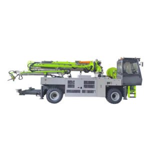Máquina de bombeamento de concreto sem caminhão, com tecnologia de duplo pistão hidráulico com diâmetro de 200 mm e curso de 1.800 mm e capacidade máxima de produção com vazão de 72m³/h de concreto; pressão máxima no concreto de 160 bar ou 16 MPA com circuito hidráulico aberto; composto por bomba hidráulica acionada por motor a diesel 110 KW ou 150 CV estacionário; tremonha de concreto com 420 L de capacidade e misturador horizontal.